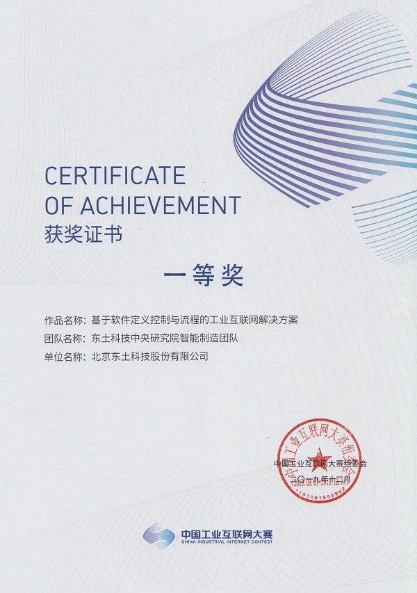 2019年12月3日,获得由工业和信息化部、浙江省人民政府指导的首届中国工业互联网大赛一等奖