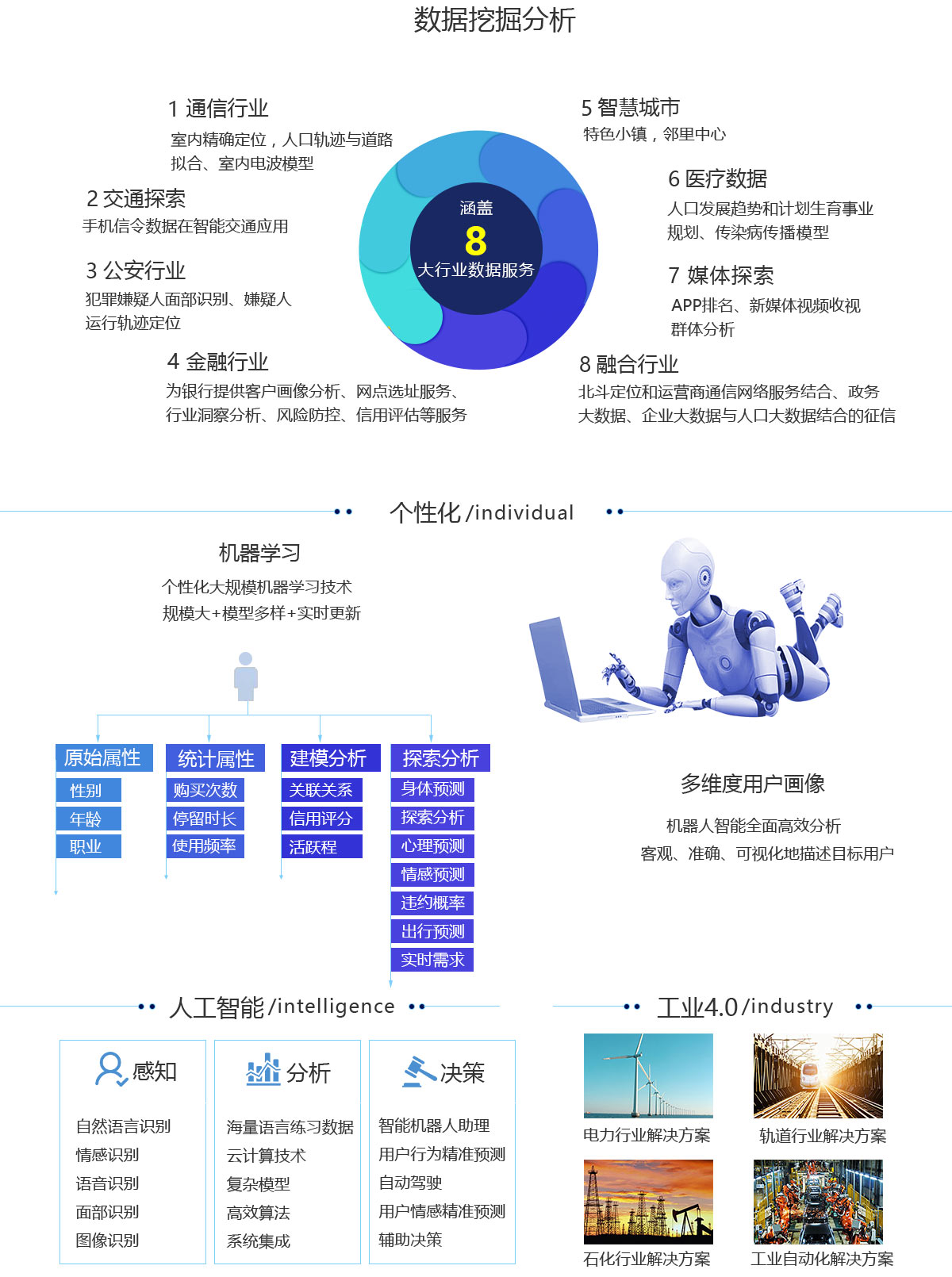 适用于任何应用场景,从个人数据到互联网数据,可根据业务需要灵活调整分析模型,多维度整合数据,将数据标签化完成画像,提升数据自身价值。