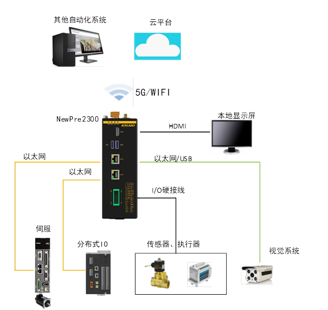 NewPre2300内置IEC61131-3实时控制内核及协议网关软件,并提供图形桌面系统,可集成如视频编解码、边缘小型数据库等多种业务软件,成为工业现场一站式边缘节点。