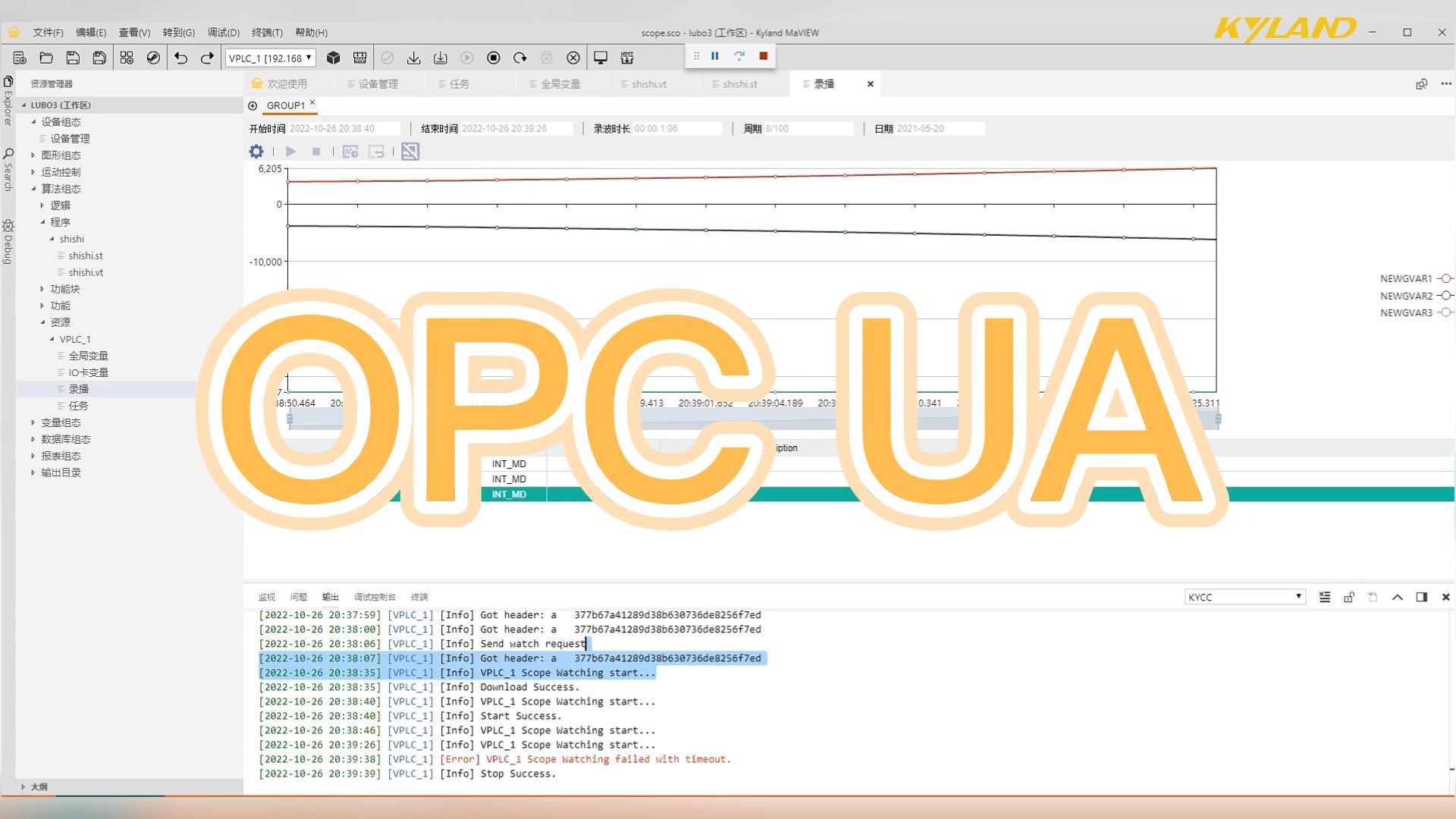 PLC运行过程中,会产生复杂工艺过程数据及设备数据,通过变量录播功能,可将这些变量以最低1ms的采样周期和监视周期进行录制,用于管道流量监控、温度变化采集等现场数据分析,亦可用于EtherCAT等高实时总线的调试、监视等过程。