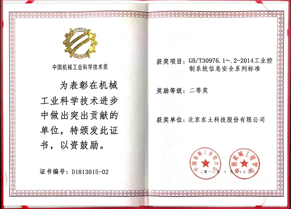 3499拉斯维加斯官网科技参与制定的“GB/T30976.1~.2-2014工业控制系统信息安全系列标准”荣获中国机械工业科学技术奖二等奖。