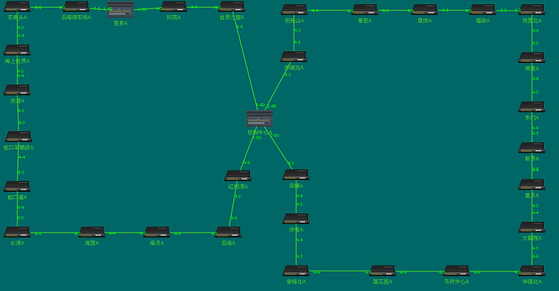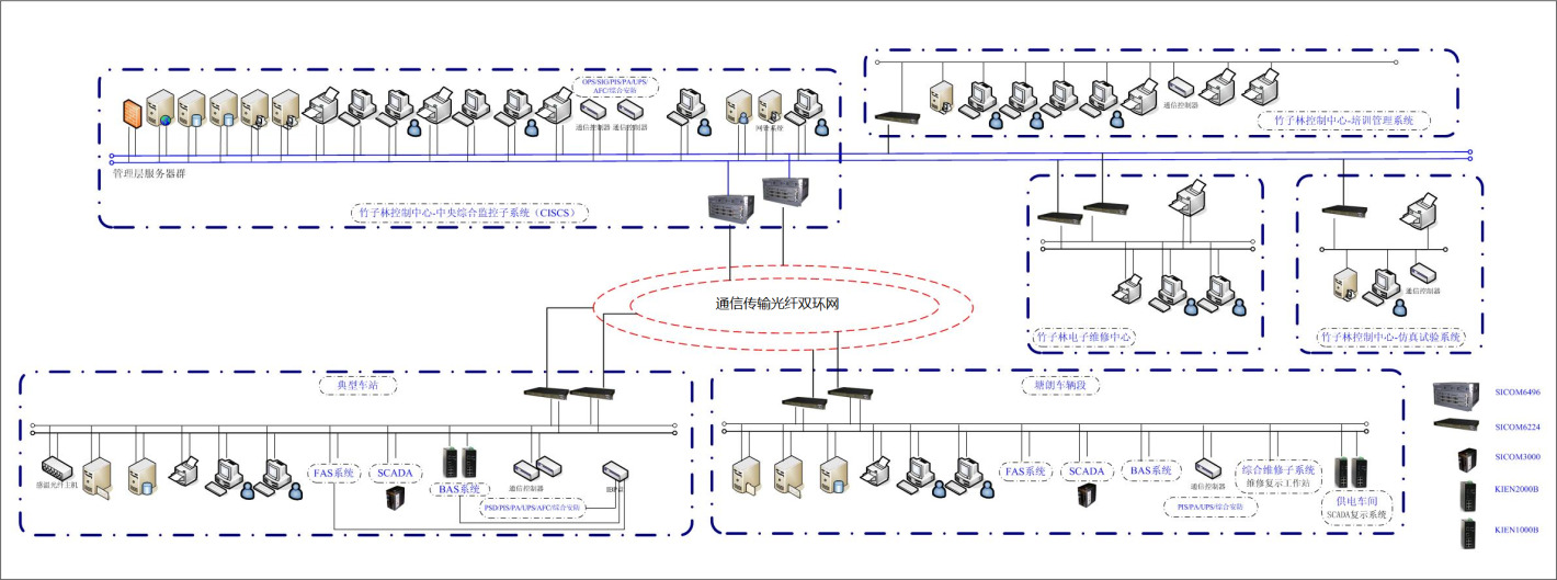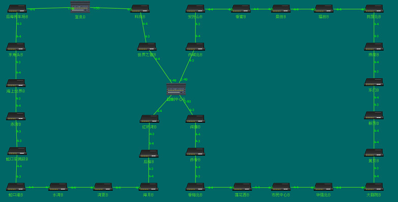 2号线运营中的线路全线设有29座车站、1个控制中心、1个车辆段,1个停车场和2个主变电所。整体监控系统分为中央级和车站级,中央级(控制中心)采用3499拉斯维加斯官网科技SICOM6496万兆级三层路由工业以太网交换机,车站级(含29座车站、1处车辆段、1处停车场)采用SICOM6424SM千兆三层路由工业以太网交换机。这些设备在各个网络节点均以两台结构分别接入通信光纤,组双冗余环网(A网和B网),实现互为冗余的无扰动切换。
