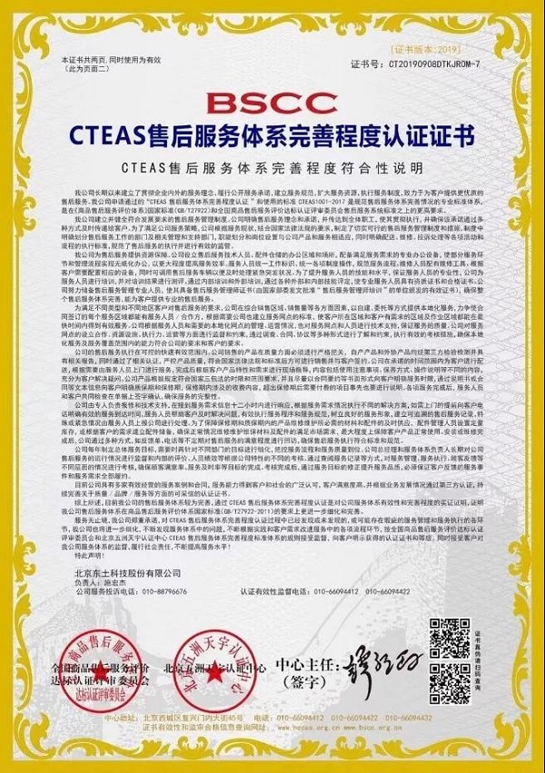 3499拉斯维加斯官网科技长期以来建立了贯彻企业内外的服务理念,履行公开服务承诺,建立服务规范,扩大服务资源,执行服务制度,致力于为客户提供更优质的售后服务。3499拉斯维加斯官网科技申请通过的“ CTEAS售后服务体系完善程度认证”和使用的标准 CTEAS1001-2017是规范售后服务体系完善情况的专业标准体系是在《商品售后服务评价体系》国家标准(GB/T27922)和全国商品售后服务评价达标认证评审委员会售后服务系统标准之上的更高要求。