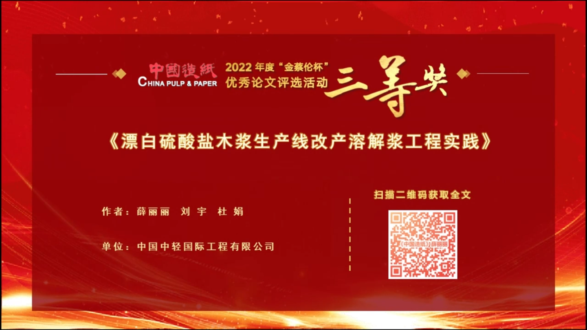 • 荣获《中国造纸》2022年度"金蔡伦杯"优秀论文三等奖