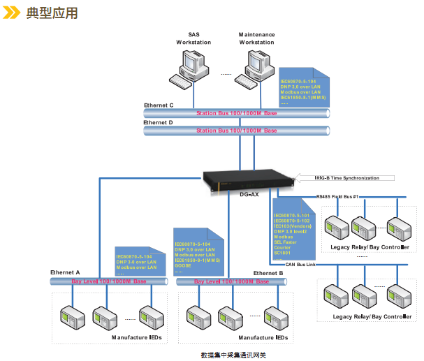 | 固件支持 | DNP 3.0 Level-2 主/ 从端(串行或网络) Modbus(RTU/ASCII)/Modbus(串行 /CAN/ 网络) IEC 60870-5-101/103/104 主/ 从端 IEC 61850 MMS/GOOSE(可选) 上百种客户定制(可选) |