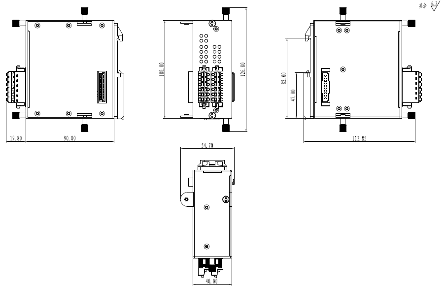 | 机械结构 | 机械结构 铝质外壳 防护等级 IP30 尺寸 40mm x 100mm x 90mm (W x H x D) 整机重量 500g 安装方式 导轨安装 |