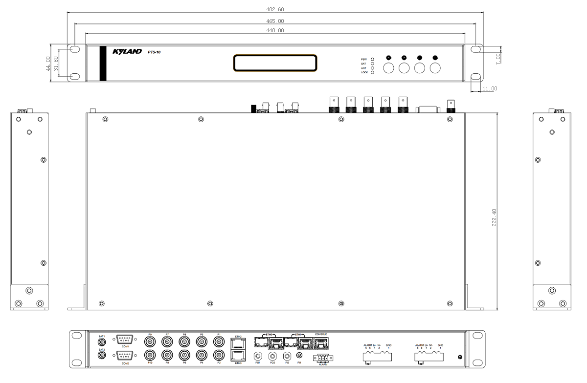 | 面板指示灯 | 电源状态指示灯:PSW 常亮:正常上电 常灭:断电 卫星状态指示灯:SAT 常亮:接收卫星数量≥4颗 常灭:接收卫星数量<4颗 天线状态指示灯:ANT 常亮:天线状态正常 常灭:天线状态异常 锁定状态指示灯:LOCK 闪烁:LOCK状态(1次/秒)/守时状态(1次/3秒) 常灭:时钟未锁定 |