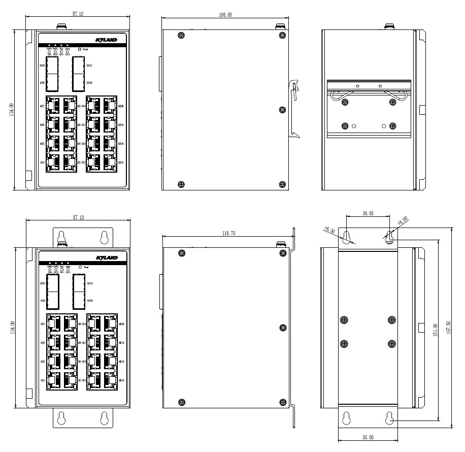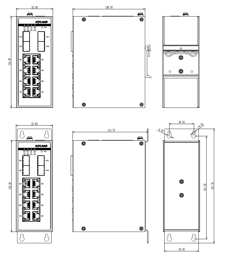 | 机械结构 | 外壳 金属材质 散热方式 自然冷却,无风扇 防护等级 IP40 尺寸 88mm×135mm×137mm (4GX8GE-HV) (W×H×D) 102mm×135mm×137mm (4GX16GE-HV) (W×H×D) 53.6mm×134mm×106mm (4GX8GE-LV) (W×H×D) 87.1mm×134mm×106mm (4GX16GE-LV) (W×H×D) 重量 1.5Kg (4GX8GE-HV) 1.9Kg (4GX16GE-HV) 0.65Kg (4GX8GE-LV) 1.0Kg (4GX16GE-LV) 安装方式 DIN卡轨式或壁挂式 |