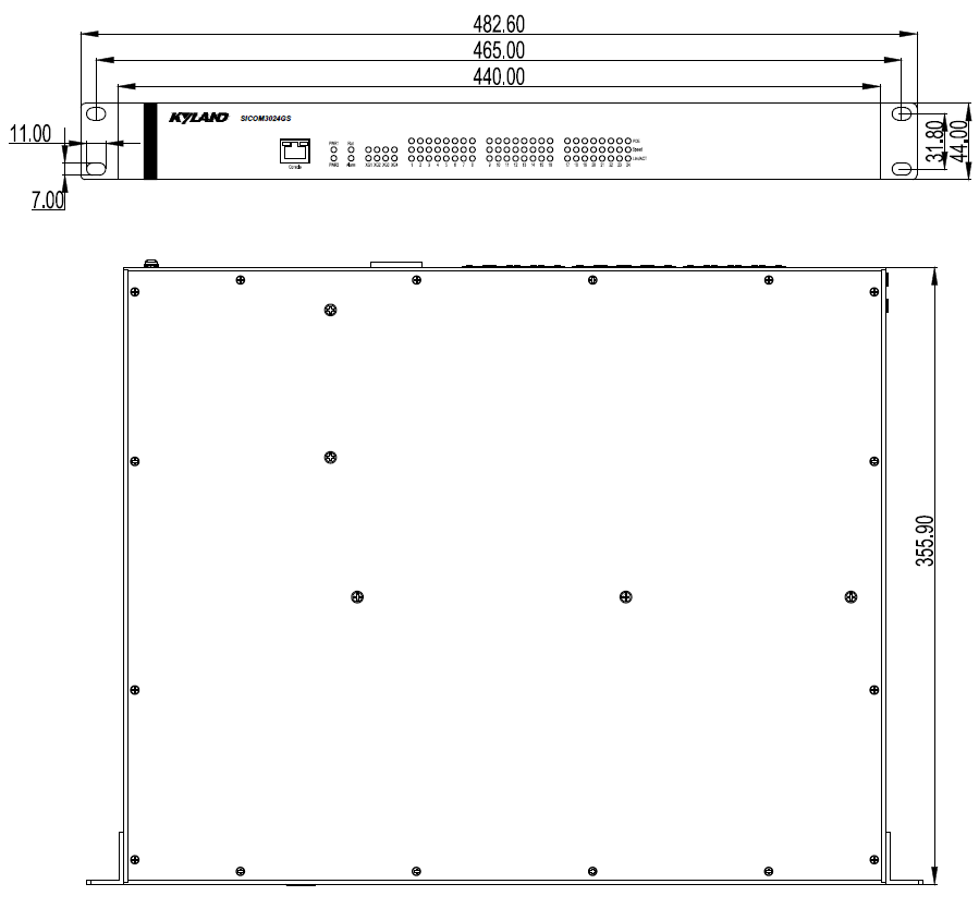 | 管理与维护 | 支持Console, Telnet, WEB管理方式 支持SNMPv1/v2c/v3,可通过Kyvision集中管理 支持SFTP/HTTP软件升级 支持电源告警, IP/MAC冲突告警, 内存/CPU利用率告警, 端口告警, 环告警, 端口流量告警, CRC及丢包率告警, SFP接口接收光功率告警和发送光功率告警 支持DDM (SFP接口) 支持环路检测 支持RMON 支持端口镜像 支持Syslog 支持LLDP 支持Link-check |