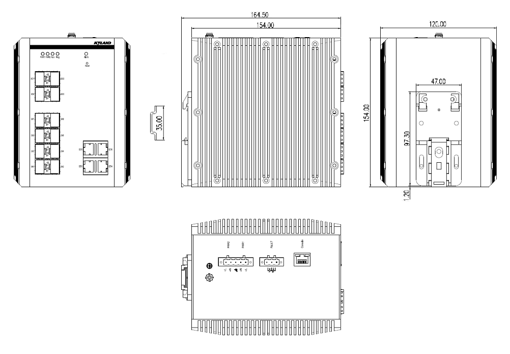 | 管理与维护 | 支持Console, Telnet, WEB管理方式 支持SNMP v1/v2c/v3, 支持DES和AES加密,可通过Kyvision集中管理 支持通过FTP/TFTP/HTTP/HTTPs进行软件升级和配置的上传下载 支持IP/MAC冲突告警, 电源告警, CPU/内存利用率告警,端口link告警,端口流量告警,端口丢包率及CRC告警,环告警,接收及发送光功率告警 支持RMON(统计组,历史组,告警组,事件组) 支持Syslog,可本地保存或上传至日志服务器 支持端口镜像和远程镜像端口 支持LLDP和LLDP MIB(802.1ab) 支持内部硬件自检 支持DDM光功率检测功能 支持MTU配置 支持Ping, Trace route |