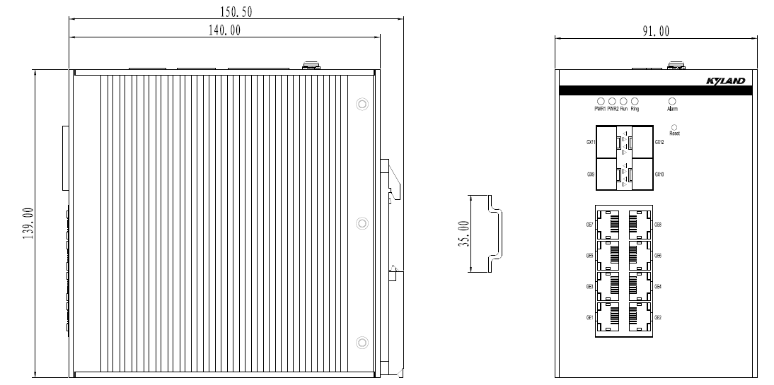 | 指示灯 | 前面板指示灯	 运行指示灯:Run 告警指示灯:Alarm 电源指示灯:PWR1,PWR2 环指示灯:Ring 接口指示灯:Link/ACT,Speed(电口);Link/ACT(光口)  |