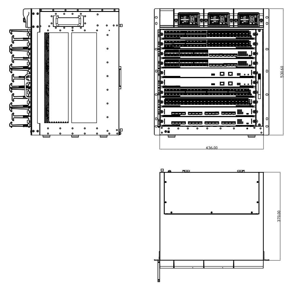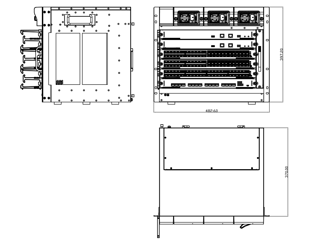 | 电源 | AC:100V-240V,50Hz±10% DC:48V 电源槽位:3 机箱尺寸(W × D × H mm): SICOM6896G-S-1BS:482×377×178,4U SICOM6896G-S-4BS:482×370×397,9U SICOM6896G-S-8BS:482×370×530,12U 整机重量(空配): SICOM6896G-S-1BS:10.5kg SICOM6896G-S-4BS:21kg SICOM6896G-S-8BS:25.5Kg |